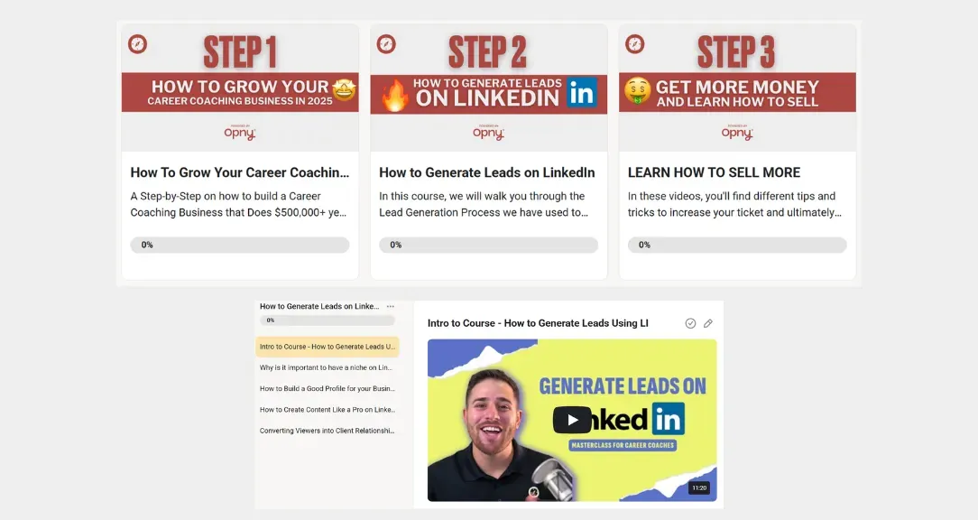 Inside our Classroom, you'll find courses designed to help you grow your career coaching business. Learn how to attract and close more clients, master LinkedIn for lead generation, and scale your business with proven strategies.